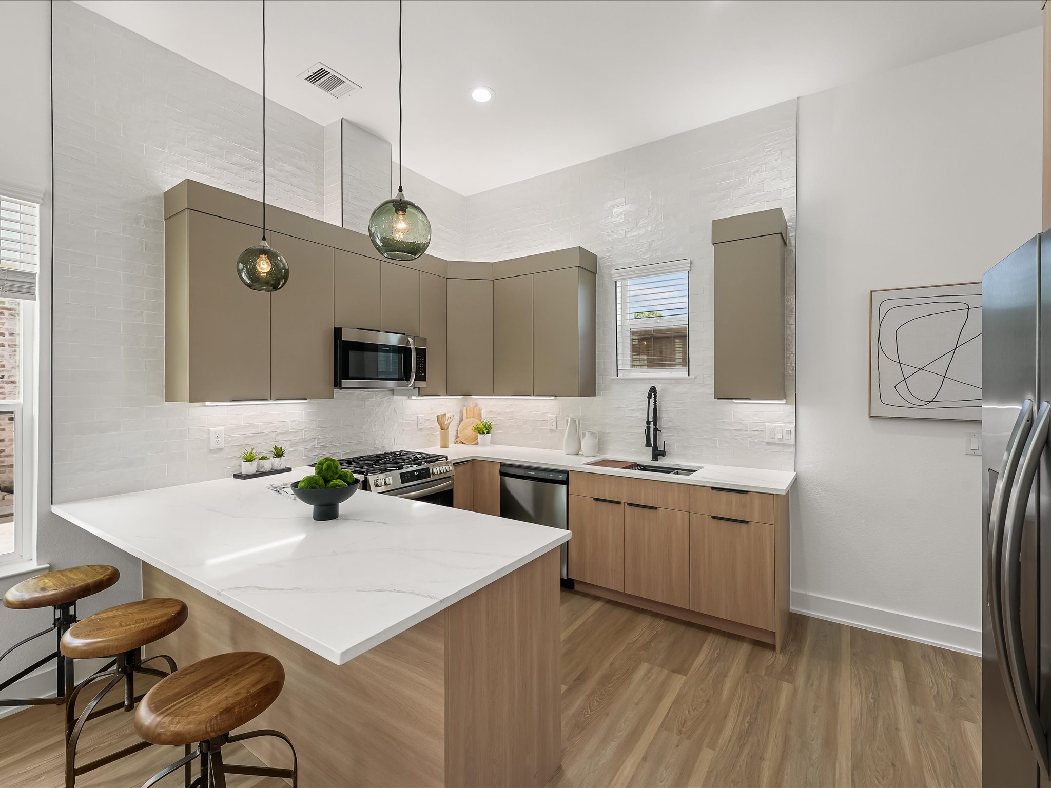 Welcome to Bricks on Tidwell — a one-of-a-kind community where Urban Lux developed character, craftsmanship, and comfort. The brick exteriors immediately set a tone of timeless luxury — a rare find in this area and a standout feature that offers both beauty and luxury. It’s the kind of curb appeal that gets better with time, and instantly sets this community apart from anything nearby. Stepping inside, the homes are just as thoughtfully crafted. Luxury vinyl flooring flows throughout every room, offering warmth, durability, and a seamless look that feels elevated from the ground up. The kitchens and baths are anchored by sleek, European-style cabinetry that brings a fresh, modern aesthetic — complemented by designer tile that runs to the ceiling and adds a boutique feel. But what truly makes Bricks on Tidwell special is in the details you don’t see everywhere else: expansive closet build-outs that feel custom and layouts that were designed to live large.